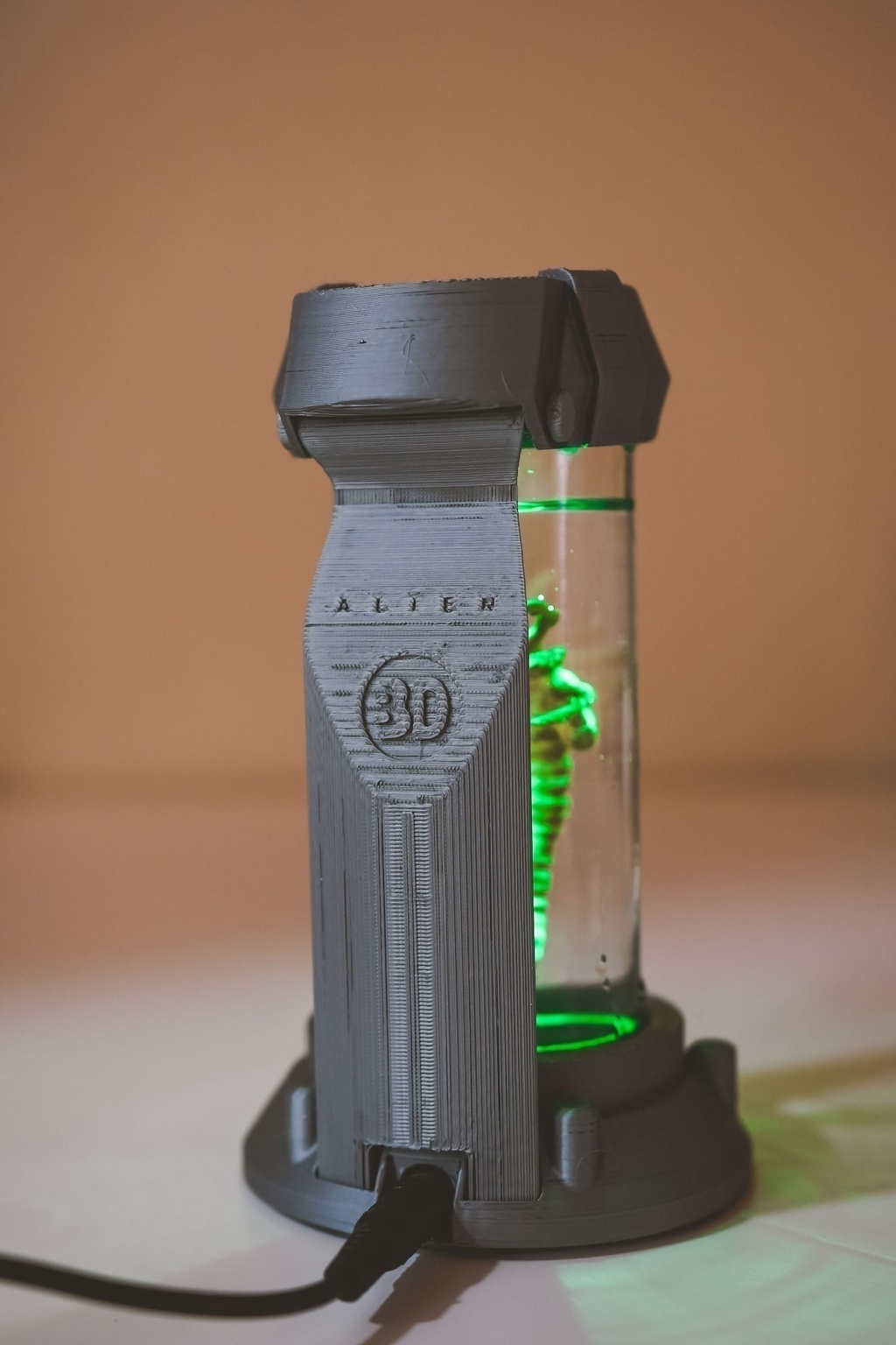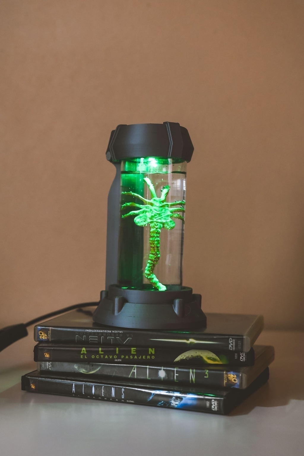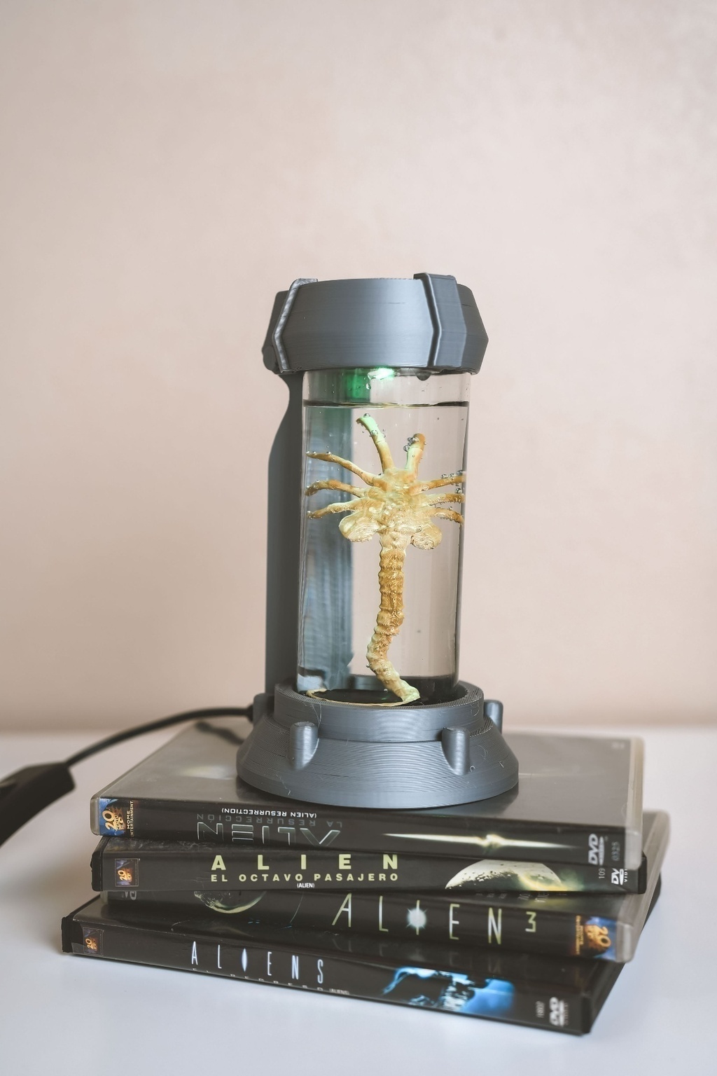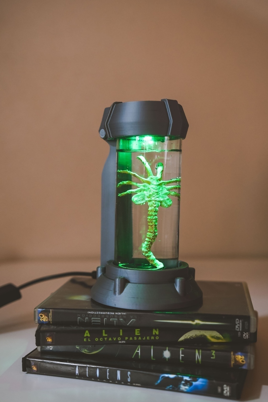 Lámpara Alien ContainerIlumina tu espacio con la fascinante Lámpara Alien Container, una obra maestra que fusiona lo mejor de la ciencia ficción con un diseño excepcional. Este singular contenedor de vidrio alberga en su interior una figura de Facehugger impresa en 3D y pintada a mano, creando un efecto visual impactante al llenarlo con agua.Características destacadas:Dimensiones: 17 cm de alto y 10 cm de diámetro.Iluminación LED: Funciona con un LED a 12 vol. Incluye interruptor y fuente para enchufar en la corriente.Transforma tu hogar en un espacio lleno de misterio y estilo con esta lámpara única. ¡No te pierdas la oportunidad de tener la Lámpara Alien Container en tu hogar!