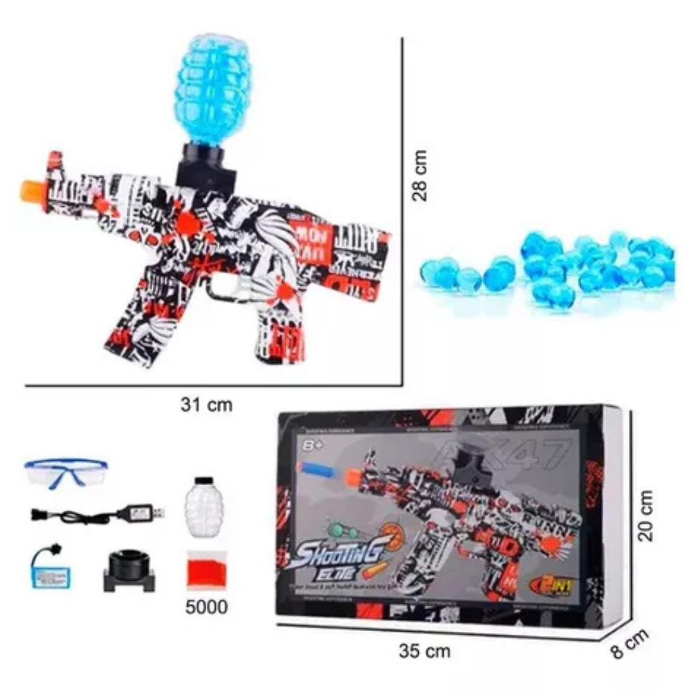 -Saca tu niño interior y vuelve a conectar con tus hijos, primos, hermanos. Deja el celular y vívelo en la vida real, cero dañino.-Sorprende a los engreídos del hogar con este fabuloso juguete que esta en tendencias ,Te presentamos la pistola de juguete, es recargable ya que funciona a batería y dispara bolitas de hidrogel, es el más vendido en el mercado y el favorito de muchos pequeños.-Cuenta con bolitas de hidrogel, que son 98% agua y 2% plástico biodegradable. Esto hace que sea completamente indoloro, sin representar ningún peligro para los pequeños de la casa. ¿Cómo funcionan las bolitas de hidrogel? Solo sumérgelas al agua por 2 horas, y listo, que empiece a divertirse .-PISTOLA DE HIDROGEL:- Alta calidad, material no tóxico.- Velocidad y fuerza de disparo contínuoACCESORIOS:- 10 Dardos- Manual.- Batería recargable.- Cable USB.- Balas de gel.(5000 unid)- Lentes de protección.- Presentación en caja.
