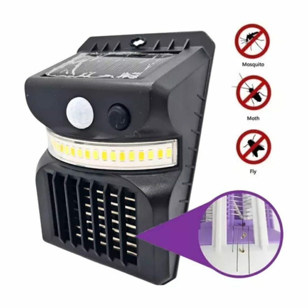 LAMPARA SOLAR LED CON MATA MOSQUITOS, IDEAL PARA TENER UN AMBIENTE EXTERIOR SIN MOSQUITOS. PUEDE OPTAR POR LUZ CALIDA O LUZ FRIA. IMAGENES REALES.- Con este equipo vas a poder iluminar un sector de tu jardin, patio o ingreso y a su vez estar libre de mosquitos o moscas. Ademas de iluminar posee una luz violeta para atraer mosquitos y a su vez les proporciona una descarga eléctrica para matarlos.Informacion del producto:- Tipo y cantidad de LED: 11 x 5730 luz fria + 10 x 5730 luz calida + 5 x 2835 violeta.- Pulsación larga para cambiar la fuente de luz: (luz blanca o luz calida).- Tiempo de funcionamiento:Siempre encendido dura entre 3 y 4 horas.Con sensor de movimiento: Dura aproximadamente 10 horas.- Tiempo de carga: 12 horas para carga solar- Batería: 1 x 18650 de 1200mAh (batería cambiable)- Material: ABS- Carga Solar:- Tamaño del panel Solar: 70 x 45mm- Tamaño del producto: 105 x 60 x 15mmFunción del producto:- Modo 1: La luz blanca permanece apagada hasta detectar movimineto, la luz brilla durante unos 25 segundos. La luz violeta permanece apagada. (Duracion de bateria 10Hs.)- Modo 2,La luz blanca permanece apagada hasta detectar movimineto, la luz brilla durante unos 25 segundos. La luz violeta permanece encendida. (Duracion de bateria 10Hs.)Modo 3: La luz blanca permanece siempre encendida. La luz violeta permanece siempre encendida. (Duracion de bateria 3 a 4Hs.)