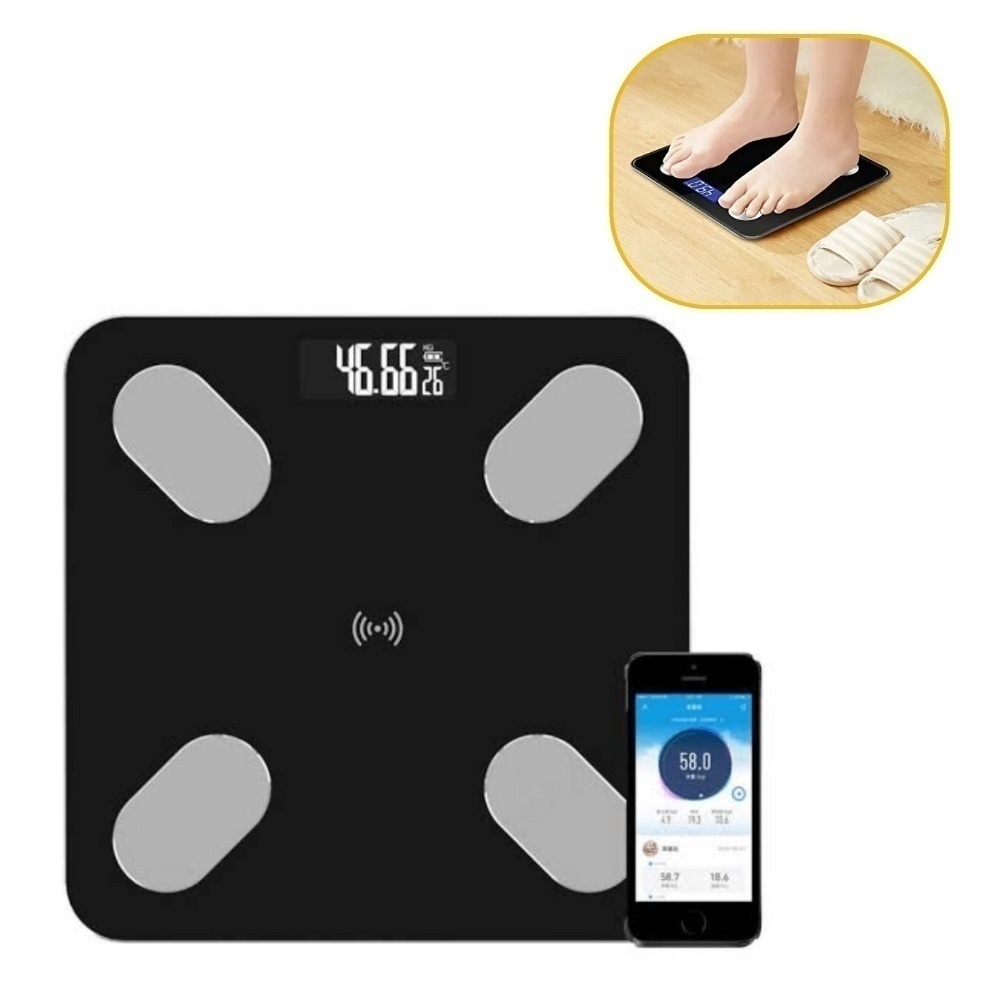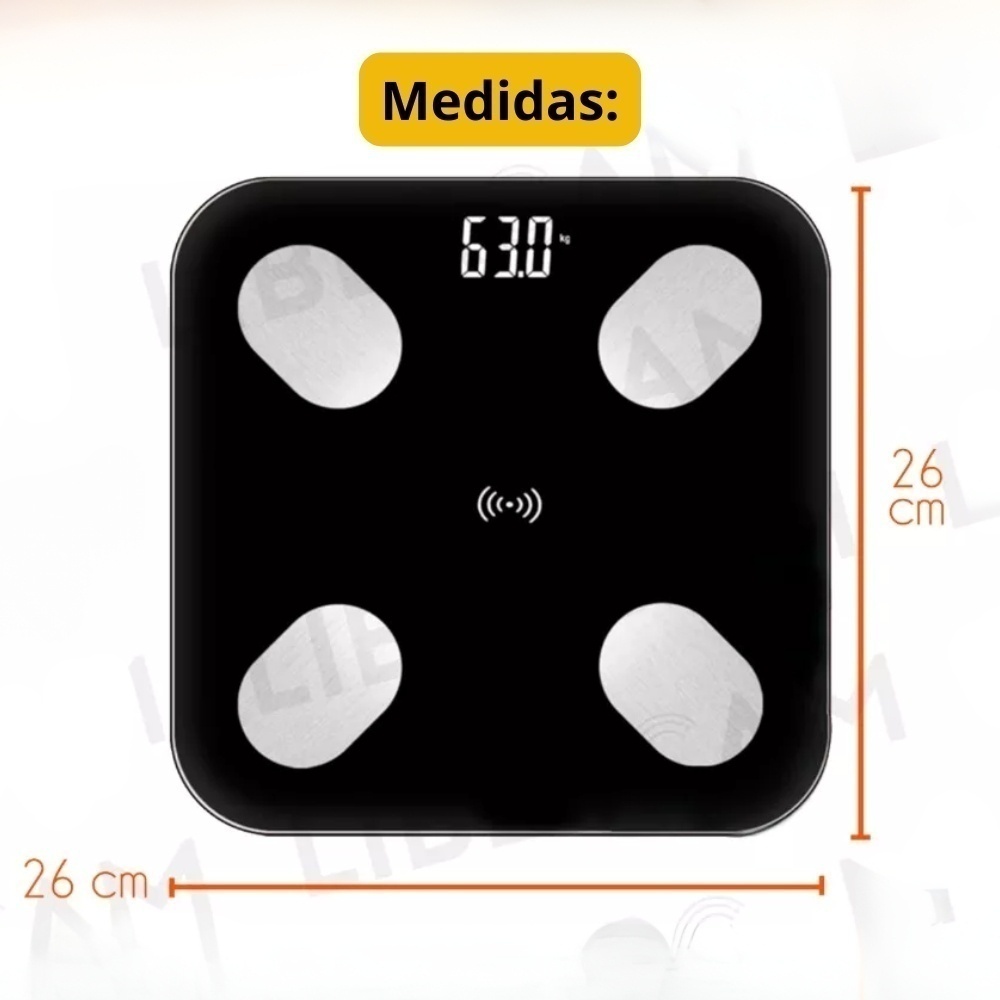 Beneficios:- Soportes antideslizantes.- Cuatro sensores.- Display digital.- Informa de batería baja y sobre carga.- Auto apagado .- Soporta hasta 180kg.- Conexión por Bluetooth.- Conexión con celular (Compatible con IOS y Android).- Material vidrio templado.- Alimentación de 2 pilas AAA PILAS.- Peso: 900 gr.APLICACIÓN MÓVIL:- Auto reconocimiento de usuario.- Permite llevar estadísticas de múltiples usuarios.- Historial de análisis.- Sincronización de datos.- Compartir datos.- Integración de datos con otras aplicaciones de Salud.- Aplicación completa en idioma español.- Índice de tejido adiposo.- Índice de agua en la composición corporal.- Índice de hidratación.- Masa ósea.- Calorías sugeridas.