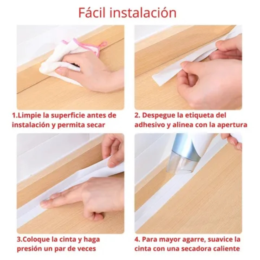 Material: Material de PVC.Longitud: 3 metros.1. Limpie las piezas que se van a sellar primero y manténgalas secas;2. Antes de usar, primero mida la dimensión de longitud de la parte de sellado requerida con precisión;3. Saque el producto, mida la misma longitud de la tira impermeable y la parte sellada nuevamente y córtelo;4. En primer lugar, retire la cinta adhesiva en la parte posterior del producto y dóblela a 90 grados, y luego fije la tira impermeable en la superficie a pegar; continúe despegando la cinta adhesiva hasta que se completen todas las instalaciones;5. Cuando el producto se pega en un giro de 90 grados, corte cada lado de la junta en una interfaz de acoplamiento de 45grados. El rango de temperatura de la sala de instalación es preferiblemente de alrededor de 25 grados centígrados, si la temperatura es demasiado baja, el adhesivo se puede pegar después de calentar el adhesivo con un secador de pelo;7. Después de pegar el producto, se presionará con fuerza para que se adhiera más firmemente;8. Después de pegar el producto, no lo mezcle con agua dentro de las 24 horas y manténgalo seco.