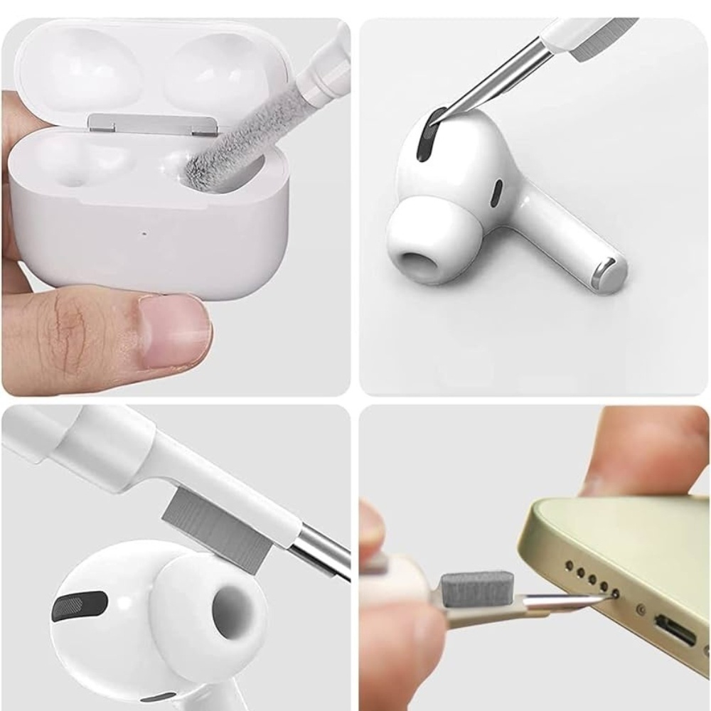 Ideal para limpiar orificios pequeños.Alta calidad: No daña los componentes de los dispositivos ni los agujeros.Ligero y portátil: diseño en forma de bolígrafo, es ligero y fácil de llevar.Se puede utilizar en cualquier momento y en cualquier lugar.Adecuado para auriculares Bluetooth, auriculares, teléfono celular, computadora, tableta, cámara y otros productos digitales.Cepillo suave y esponja: hay un cepillo de microfibra suave por encima de la punta del bolígrafo, que puede limpiar profundamente las partes pequeñas y los agujeros de los auriculares.En el otro extremo del bolígrafo hay un cepillo suave y ligero que limpia el contenedor de carga.Limpieza de 360 grados: bolígrafo de limpieza bien diseñado, ahorra mano de obra, ayuda a limpiar zonas de difícil acceso o cualquier otra esquina. Es imprescindible para cualquier persona que use auriculares.Nunca utilices líquidos para limpiar los auriculares.Amplia gama de aplicaciones: este bolígrafo de limpieza no solo puede limpiar los auriculares, sino también la caja de carga de auriculares, auriculares de teléfono celular, micrófonos, etc.