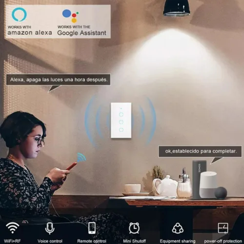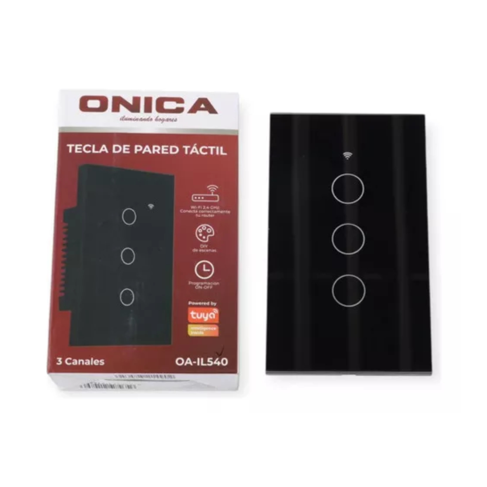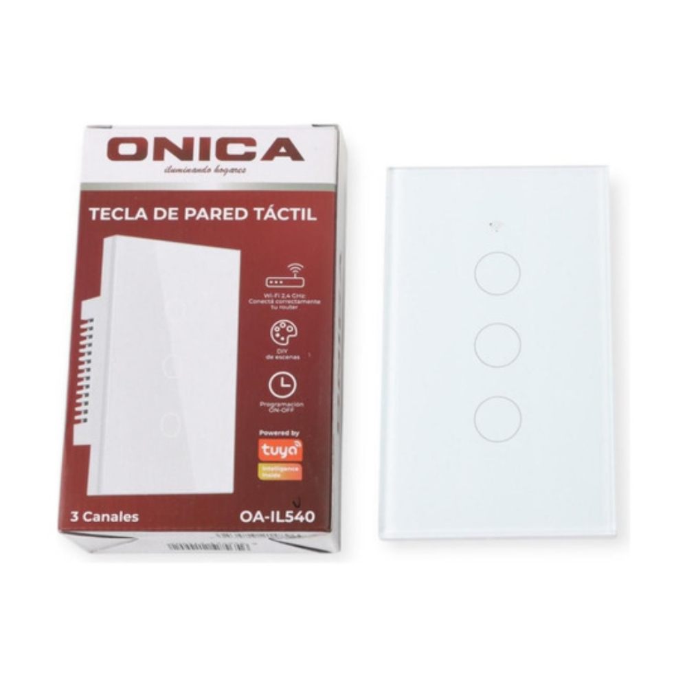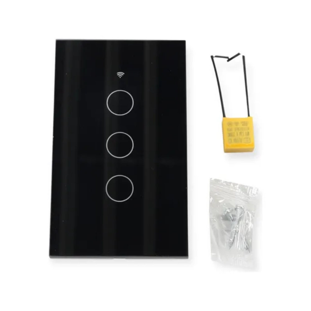 Interruptor Inteligente Táctil WiFi 3 Canales – Compatible con Alexa y GoogleModernizá tu hogar con esta tecla táctil inteligente de 3 canales, diseñada para controlar luces o dispositivos desde tu celular o por voz. Con un elegante frente de vidrio templado, combina funcionalidad y estilo, aportando un acabado sofisticado a cualquier ambiente interior.Este interruptor es compatible con asistentes virtuales como Alexa, Google Assistant y con la app Tuya Smart, permitiéndote encender, apagar o programar tus dispositivos a distancia. Gracias a su conectividad Wi-Fi y Bluetooth, el emparejamiento es rápido y el funcionamiento estable.Soporta hasta 1000W y trabaja en un rango de 200 a 240V, ideal para la mayoría de instalaciones domésticas. Su sistema táctil es sensible y duradero, y su clasificación IP20 lo hace perfecto para interiores.Características destacadas:Control remoto vía app o comandos de vozConectividad Wi-Fi + BluetoothSuperficie táctil de vidrio templado3 canales independientesPotencia máxima: 1000WVoltaje: 200–240VUso interiorControlá tu hogar con un solo toque o desde tu celular. Una solución inteligente y estética para ambientes modernos.