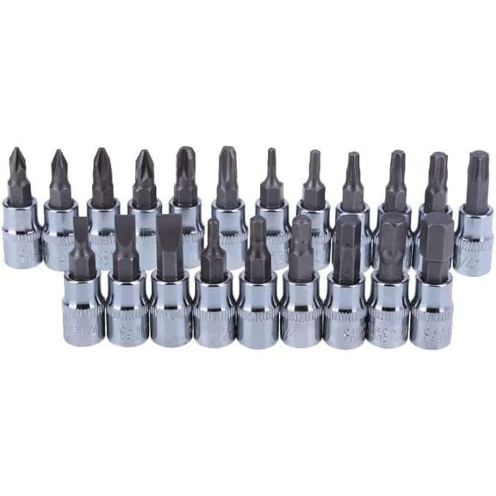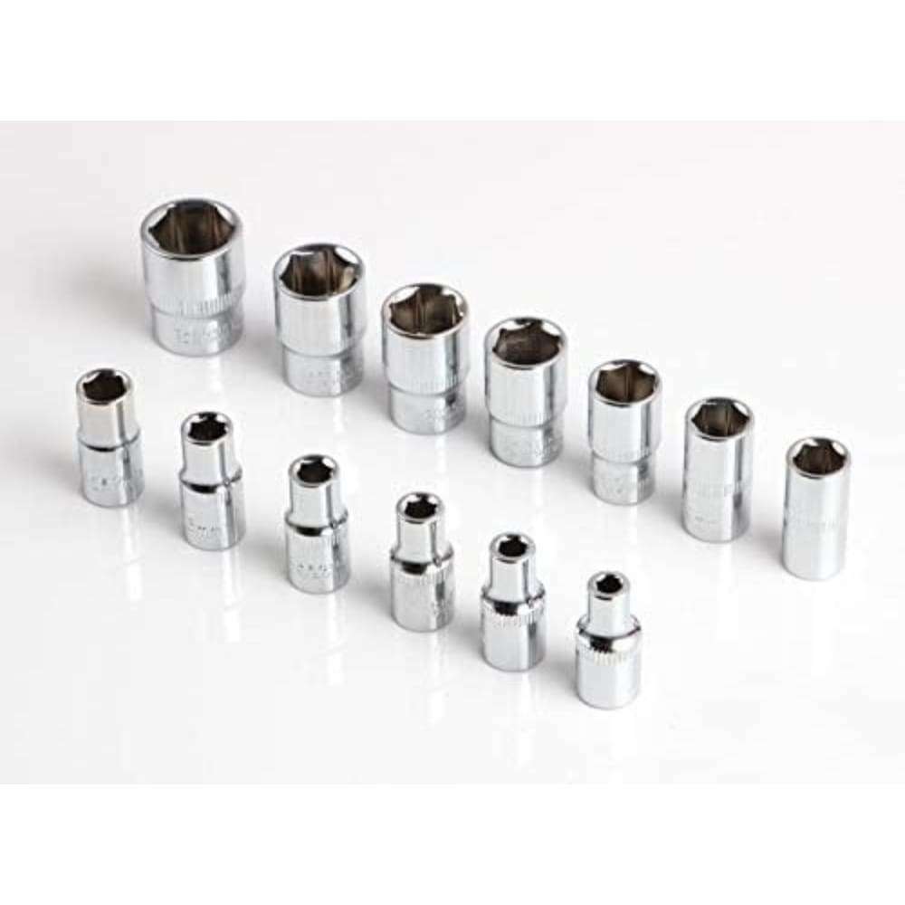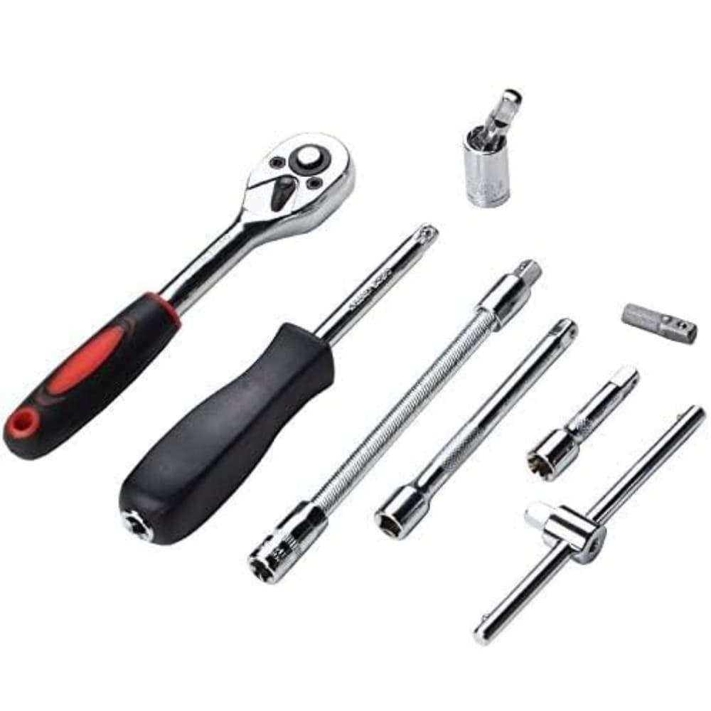 Juego de llaves de vaso de 46 piezas para reparaciones de automóviles y bricolaje: conjunto completo de 46 piezas para reparaciones automotrices, mantenimiento y proyectos de bricolaje. Alto torque, los enchufes de 6 puntos agarran los lados planos de los sujetadores, no las esquinas, evitando el redondeo.Material duradero de acero al cromo vanadio - 46 piezas: Hecho de material de acero al cromo vanadio de alta calidad y duradero para un uso duradero.Diseño ergonómico con mango de trinquete de liberación rápida: diseño ergonómico con mango de trinquete de liberación rápida para un uso fácil y eficiente.Incluye tamaños métrico y SAE con toma de transmisión de 1/4 ": incluye tamaños métrico y SAE con toma de 1/4", zócalo de 0.157 in a 0.551 in y juego de brocas para aplicaciones versátiles.Estuche de almacenamiento portátil para uso sobre la marcha: Estuche de almacenamiento portátil y organizado para un fácil transporte y almacenamiento, ideal para garaje, taller o uso sobre la marcha.Adecuado para reparaciones de automóviles, mantenimiento y proyectos de bricolaje: el kit de herramientas de reparación de brocas de trinquete GJ de 46 piezas de 1/4 "es adecuado para una amplia gama de tareas, incluidas reparaciones de automóviles, mantenimiento y proyectos de bricolaje. Esto lo convierte en una adición versátil y útil a tu caja de herramientas.Construido para durar y soportar incluso las tareas más difíciles: las herramientas de este kit están diseñadas para durar y pueden soportar incluso las tareas más difíciles. Los materiales duraderos y de alta calidad utilizados en su construcción garantizan que se puedan utilizar una y otra vez sin romperse o dañarse.