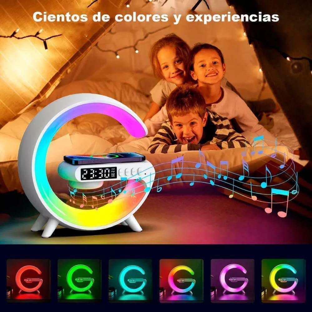 Lámpara de Mesa RGB con Parlante Bluetooth y Cargador Inalámbrico