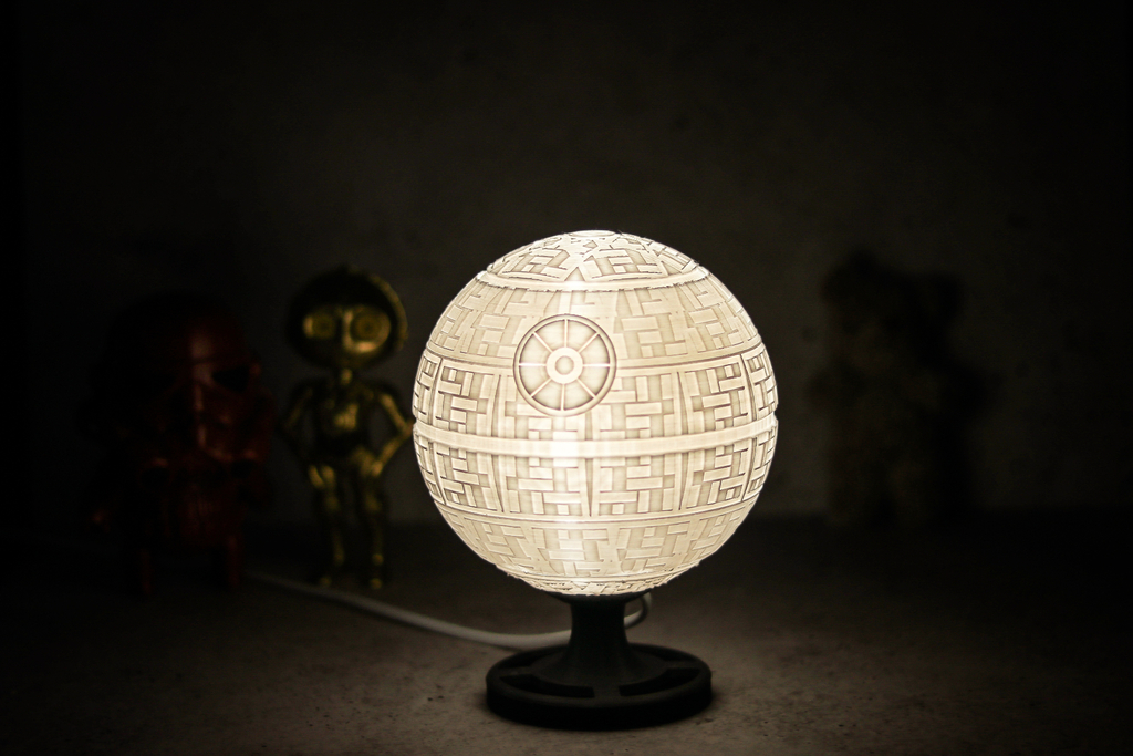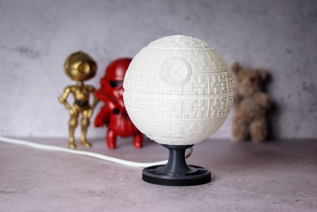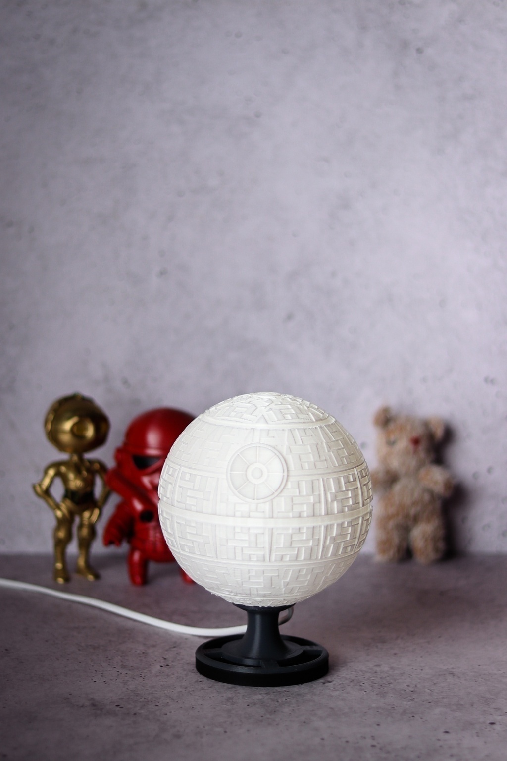 Lámpara Estrella de la MuerteDescubre la Lámpara Estrella de la Muerte, una impresionante pieza de iluminación diseñada exclusivamente por Baradero 3D. Este producto, realizado mediante impresión 3D en plástico, no solo es funcional, sino que también es una obra de arte moderna que transformará tu espacio.Características destacadas:Iluminación LED: Incluye un foco LED de larga duración (20,000 horas), que ofrece una luz brillante y eficiente.Base Roscada: La base impresa en 3D cuenta con una rosca fija, facilitando el cambio de foco cuando lo necesites.Lista para usar: Viene con interruptor y está lista para enchufar, sin complicaciones.Dimensiones:Diámetro: 15 cmBase: 10 cm de diámetro y 5 cm de altoAltura total: 19 cm (aprox)No pierdas la oportunidad de iluminar tu hogar con esta lámpara única. ¡Hazla tuya hoy mismo!