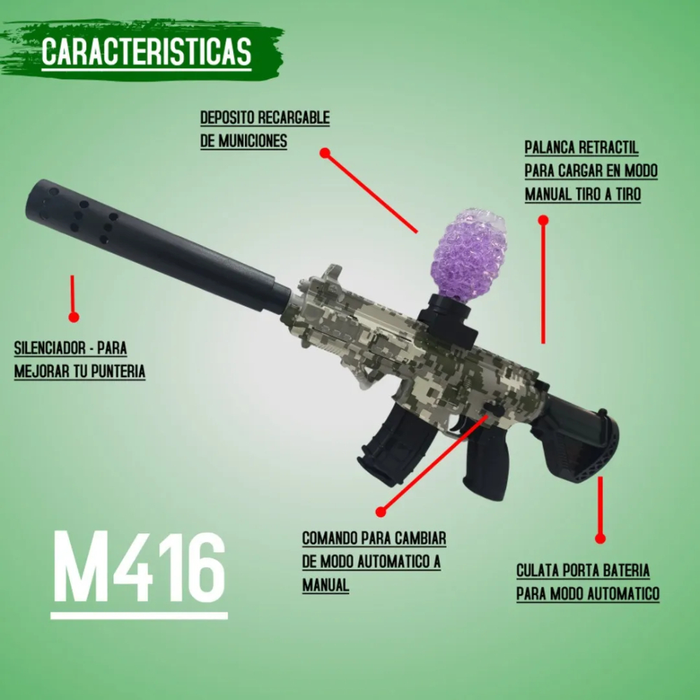 Ametralladora Automática de Juguete con Balas de Hidrogel – Modelo AK47 Viví la adrenalina del juego con esta ametralladora automática tipo AK47, ¡segura, divertida y con un diseño camuflado increíble!Características principales:Dispara balas de hidrogel: se rompen al impactar y se evaporan al secarse, sin ensuciar ni dañar.Disparo automático con batería recargable por USB (no usar cargador de celular).Luces LED laterales y sonido realista al disparar.Alcance de hasta 25 metros.Silenciador desmontable incluido.Requiere cargar las balas en agua hasta alcanzar 7-8 mm antes de usarlas.Recomendado para mayores de 14 años (menores, solo con supervisión).Ideal para juegos grupales, desarrolla habilidades motoras y de puntería.Medidas:Largo total: 56 cm (sin silenciador: 31 cm).Alto: 16 cm (con cargador: 27.5 cm).Profundidad: 3.8 cm.Cargador: 10 cm de alto x 7 cm de diámetro.Incluye:AmetralladoraSilenciadorBalas de hidrogelBatería recargable de 3.7v 500mAhCable de carga USBCargador de municiones⚠️ Usar siempre con gafas protectoras (no incluidas). No disparar a personas ni animales. No ingerir las balas.