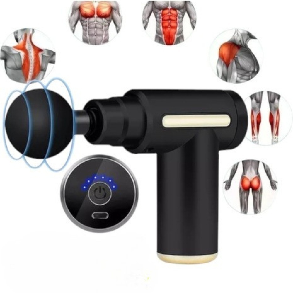 Masajeador de vibraciones de alta velocidad, alivia el dolor muscular, relaja el cuerpo y promueve la circulación sanguínea y linfática.-Incluye 4 cabezales intercambiables para diferentes tratamientos.-Posee 6 niveles de intensidad.-Carga mediante puerto USBBENEFICIOS» Reduce eficazmente la rigidez muscular y el dolor, aumentando la circulación sanguínea.» Adecuado para la recuperación después de la fatiga deportiva, rehabilitación después de una lesión o el alivio del dolor durante el período de recuperación postquirurgico.» Disminuye la reacción inflamatoria.»Mejora la salud general de los tejidos blandos del cuerpo.CABEZALES:Cabezal doble: Para tratamientos de columna (cervical y lumbalgia)Cabezal plano: Para todo el cuerpoCabezal Redondo: Para músculos largosCabezal bala: Para tejidos profundos y puntos de activaciónESPECIFICACIONES TÉCNICAS:Voltaje de carga: 5VVoltaje de la batería: 7,4V Corriente de carga: 2A (USB)Potencia nominal: 24W Niveles: 6Horas de trabajo: 4-7 horasTiempo de carga: 2,5-4 horasForma de carga: Carga USBMaterial : ABSRuido acústico: 45 dbTamaño/peso de la pistola de fascia: 13,3*13*5cm/0,6 kg Protocolo de uso:Seleccione el cabezal adecuadoCon la piel limpia, realice el tratamiento durante 15 minutos por zonaRecomendamos utilizarlo diariamente para un mejor resultado de la recuperacion