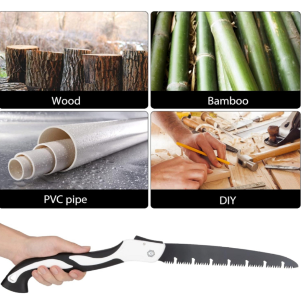 Una herramienta práctica y confiable que no puede faltar en tu equipo. Este serrucho portátil combina potencia, precisión y comodidad en un formato compacto, perfecto para quienes aman el aire libre, los trabajos manuales o necesitan una solución efectiva en casa o el taller.Con una hoja de 24 cm de acero afilado con doble dentado, permite realizar cortes limpios en madera o caños plásticos sin esfuerzo. Su diseño plegable y su mango ergonómico con recubrimiento antideslizante lo hacen cómodo de usar y fácil de transportar.Fabricado con materiales duraderos y resistentes, ofrece un rendimiento constante tanto en el campo como en tu banco de trabajo.Características destacadas:Tamaño total desplegado: 52 cmLargo de hoja: 24 cm | Mango plegado: 30 cmMango de plástico y goma antideslizante para un agarre seguroCuerpo resistente y duraderoCorte eficiente en madera y plásticoDiseño compacto para facilitar guardado y trasladoUsos recomendados:Excursiones, camping y actividades al aire libreTrabajos de carpintería, bricolaje o jardineríaProyectos domésticos y mantenimiento generalUna herramienta todo terreno que combina comodidad, eficacia y practicidad. ¡Agregala a tu kit y enfrentá cualquier tarea con confianza!