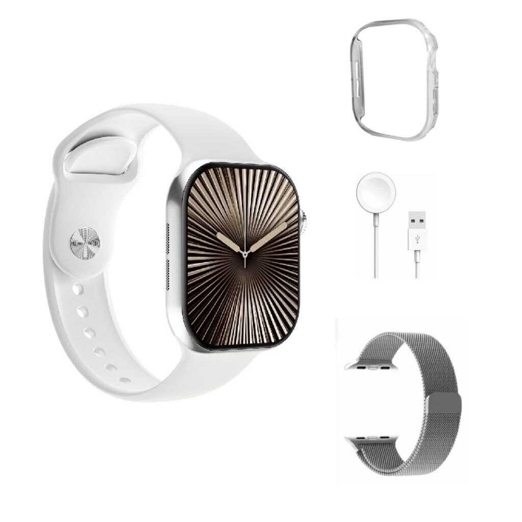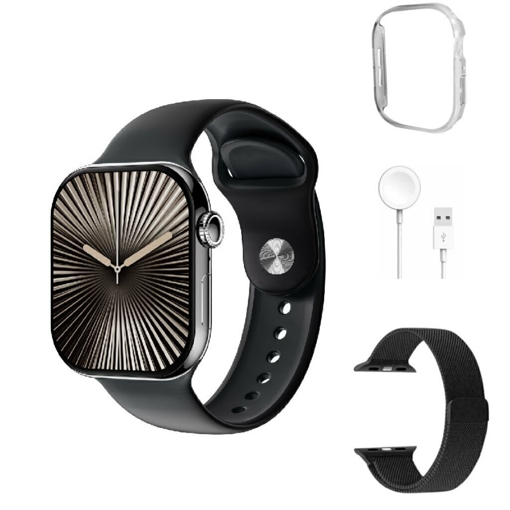 ¡Descubrí el SMARTWATCH S10 PRO, tu compañero ideal para un estilo de vida activo y saludable!Este smartwatch no solo es un accesorio elegante, sino también una herramienta poderosa para monitorear tu bienestar. Con su IP68 resistente al agua, podrás llevarlo contigo incluso en los días más lluviosos o durante tus entrenamientos más intensos.Funciones de salud avanzadas: - Monitoreo de ritmo cardíaco, presión arterial, oxígeno en sangre y calidad del sueño. - Medición de temperatura corporal - Registros de pasos y calorías, para que puedas seguir tu progreso día a día.Comunicación sin límites: Recibí y realizá llamadas Bluetooth directamente desde tu smartwatch. Ya no necesitarás sacar el celular mientras conduces o entrenas.Facilidad de uso: Con la opción de control por gestos y voz, gestionar tus llamadas y notificaciones es más fácil que nunca. Además, podrás personalizar tu experiencia con una variedad de fondos de pantalla.Conectividad y entretenimiento: Disfrutá de tus juegos y aplicaciones favoritas con descargas directas. La carga inalámbrica y el Bluetooth 5.0 aseguran que siempre estés conectado.Componentes incluidos: - 1 Smartwatch S10 PRO - 2 mallas intercambiables - 1 cable cargador inalámbrico USB - 1 manual de usuario